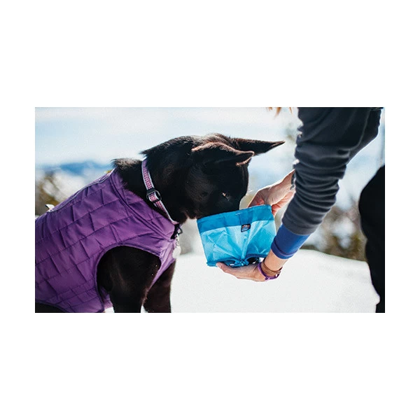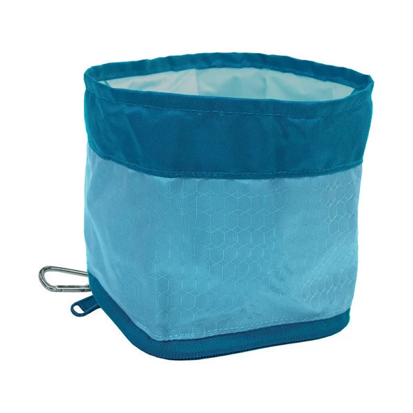 Lâabreuvoir de voyage ZIPPYâą est un bol compact en tissu trĂšs rĂ©sistant pour contenir aussi bien de lâeau que des croquettes.