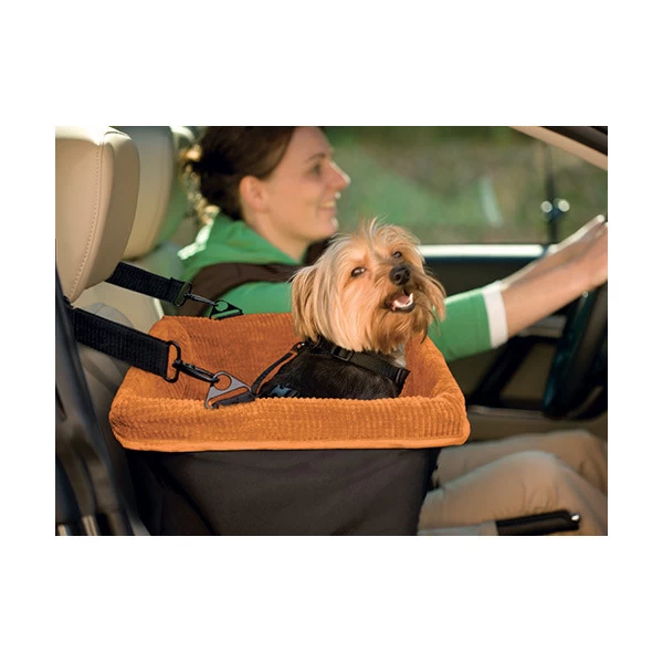 Le siège rehausseur SKYBOX BOOSTER™ permet d’installer les petits chiens à l’avant du véhicule, en toute sécurité.