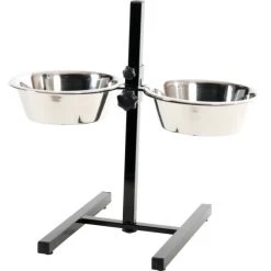 Le support est fait d’acier et de carbone, il est équipé de deux bols en inox d’une grande solidité et d’une capacité de 2.75 litres.