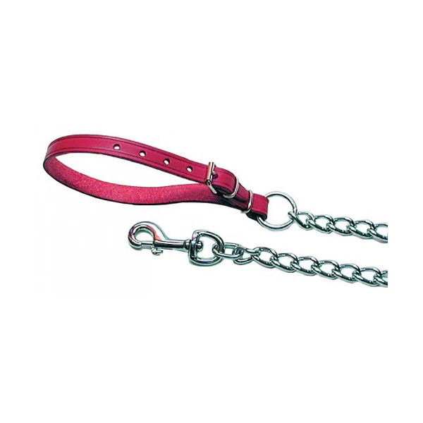 La laisse métallique plus ou moins épaisse avec une poignée en cuir résiste particulièrement bien aux coups de dents.
